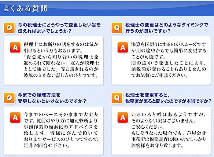 ーご安心ください。芦屋会計事務所では、上記のようなご不満を解消できますー
