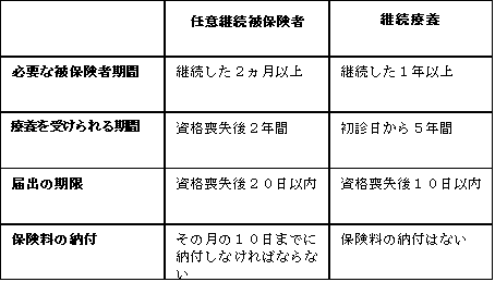 ご質問の場合、継続療養を受けるか、または任意継続被保険者となるかの2つの方法があります。 継続療養及び任意継続被保険者の要件は以下のとおりです。